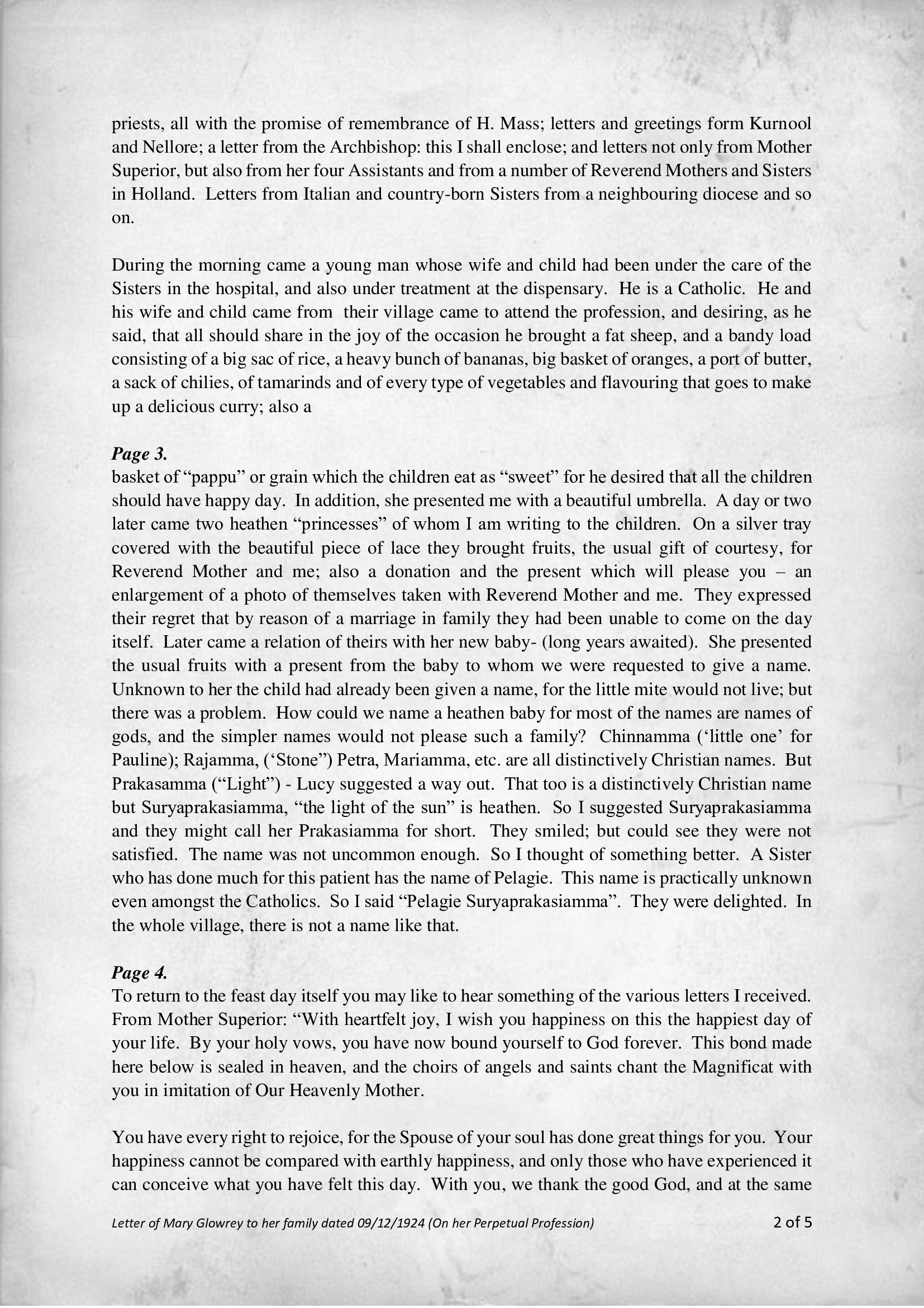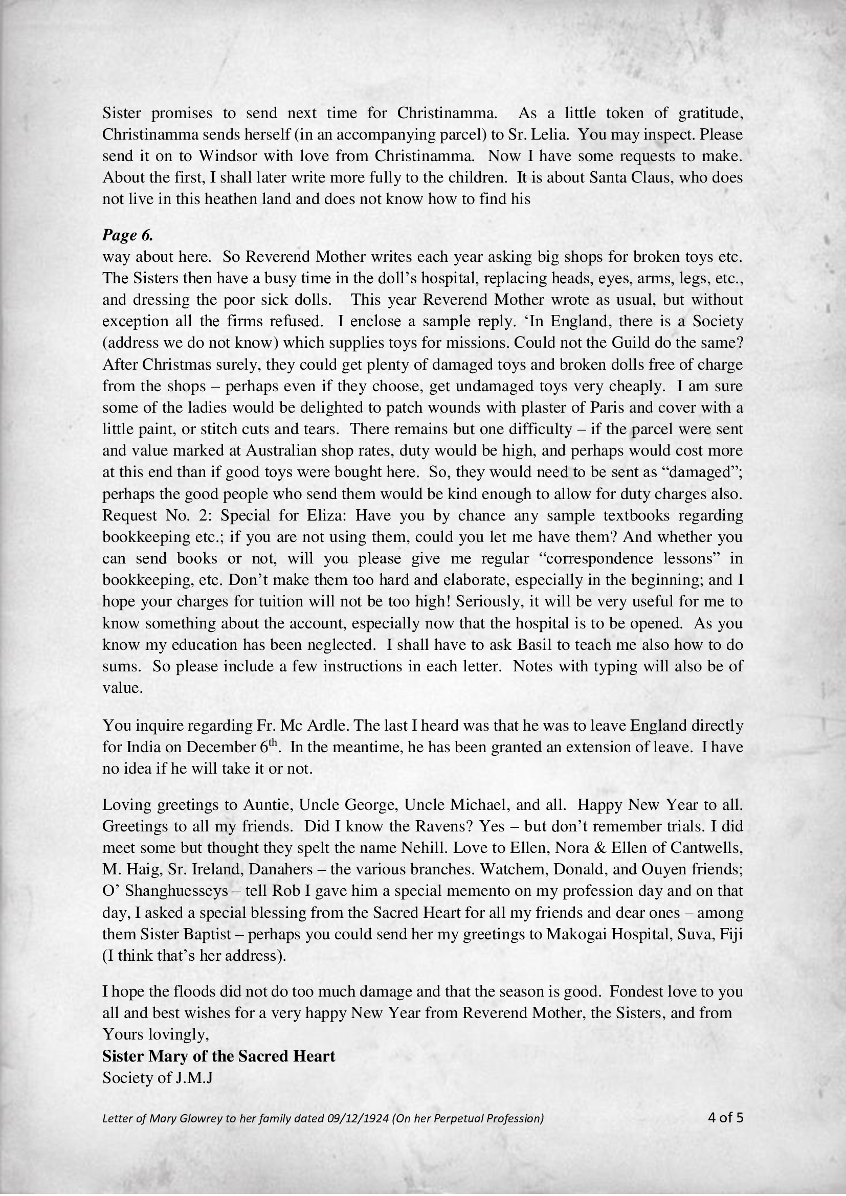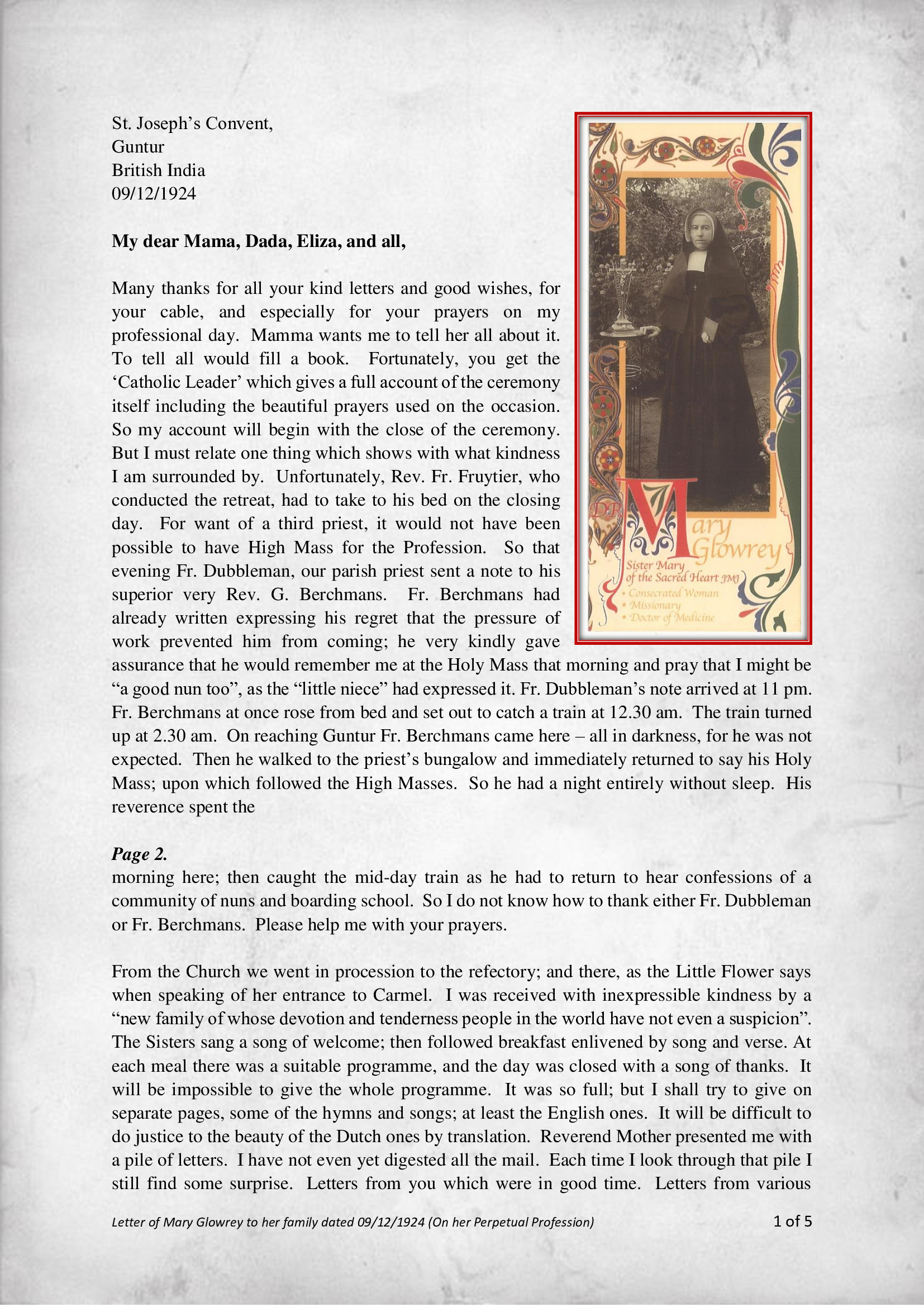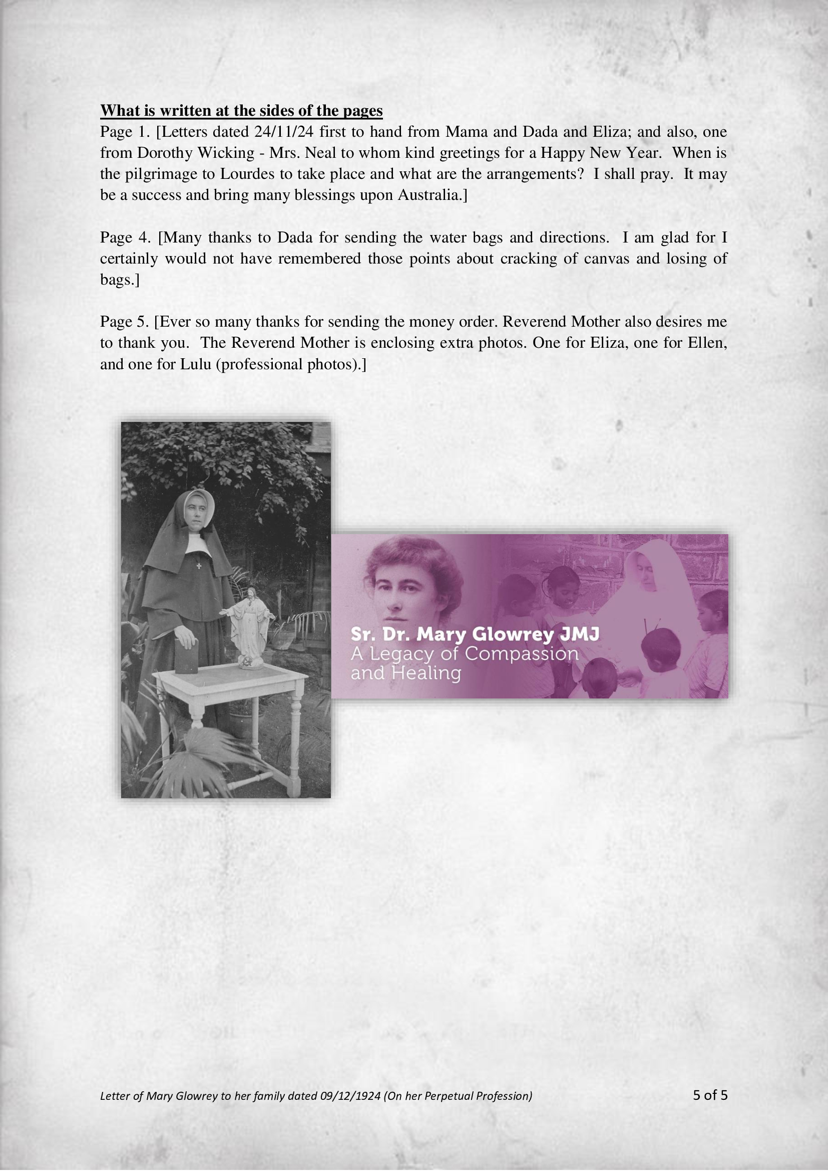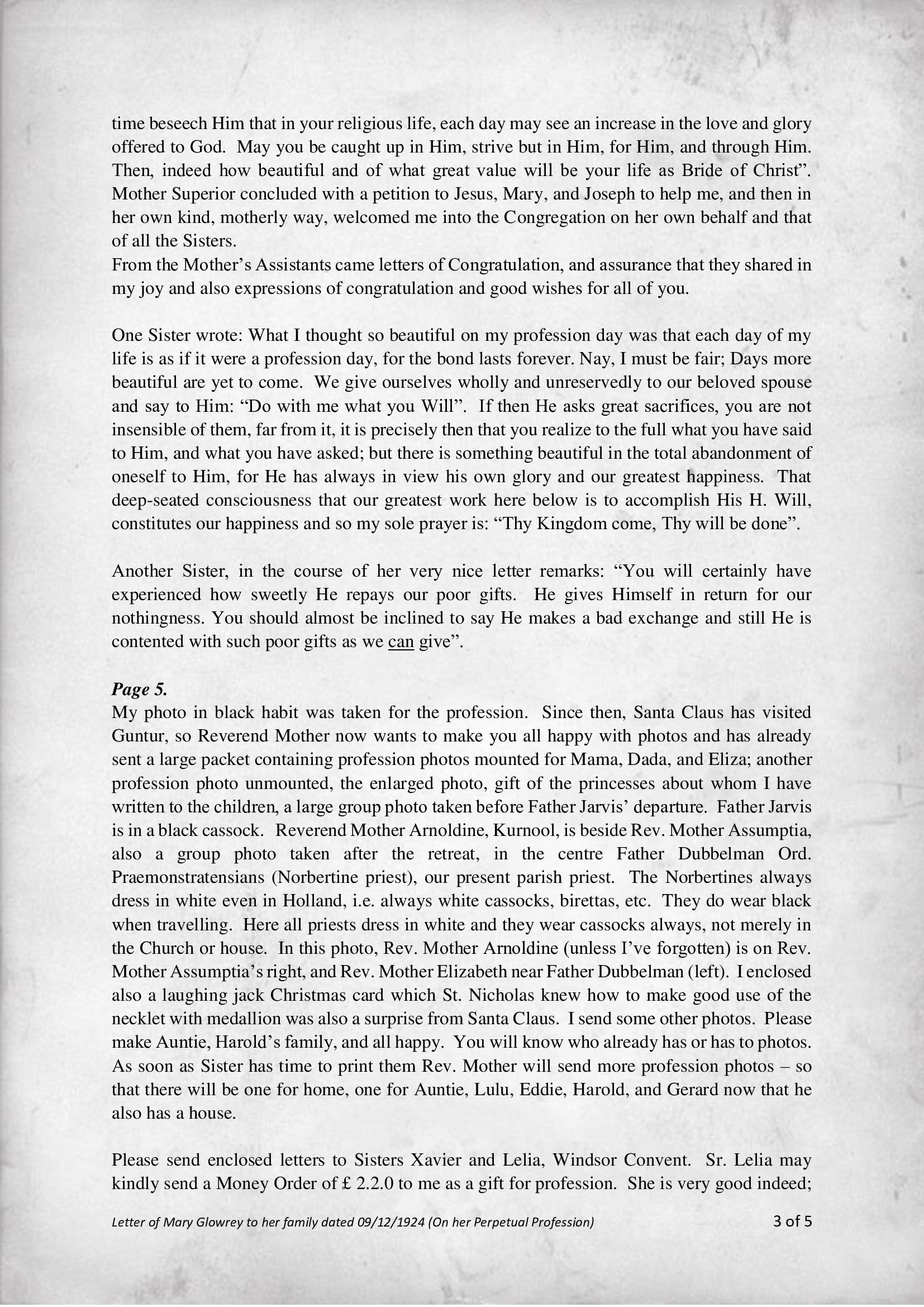 Original letter About Perpetual profession-Sr. Mary Glowrey